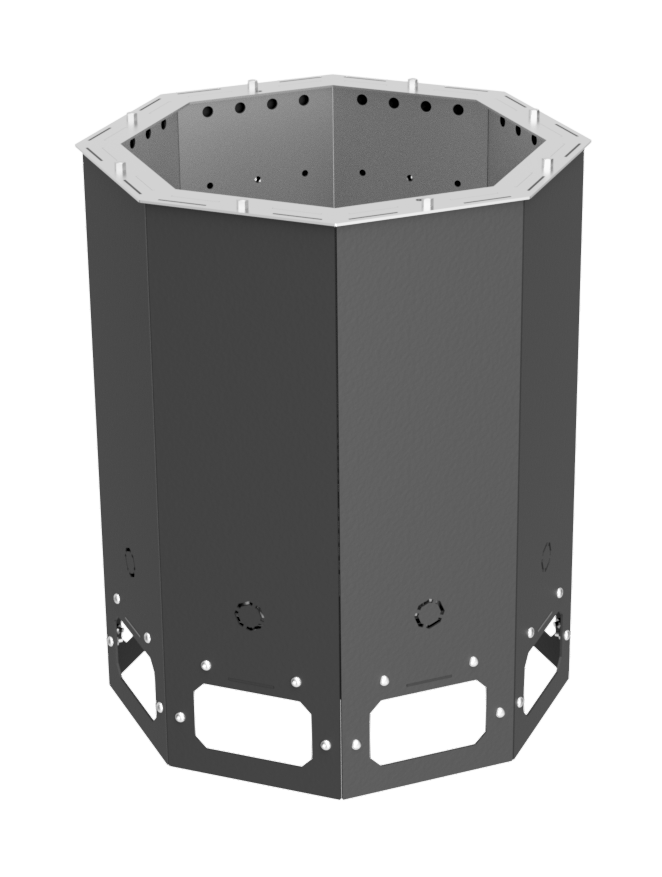 - Materiál: 2 mm + 2 mm ocel, horní prstenec 2 mm nerez